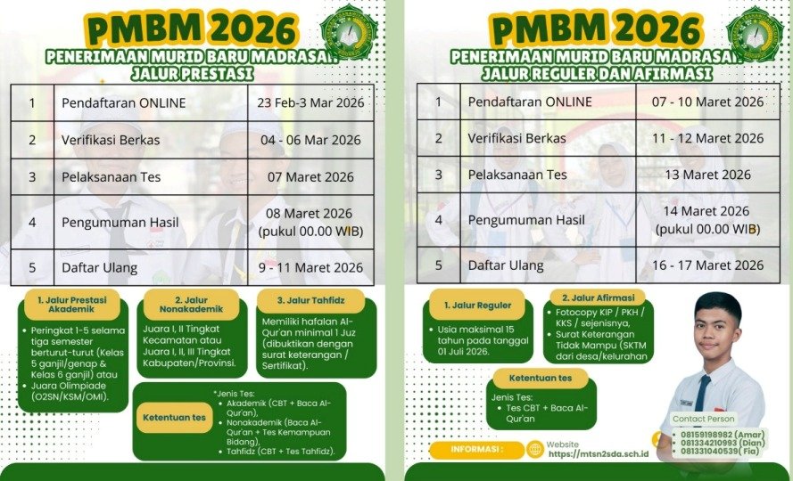 MTS NEGERI 2 SIDOARJO menyediakan PMBM secara online diharapkan proses PMBM dapat berjalan cepat dan bisa dilakukan dimanapun dan kapanpun selama sesi PMBM Online dibuka. silahkan mengakses website PMBM Online MTS NEGERI 2 SIDOARJO.